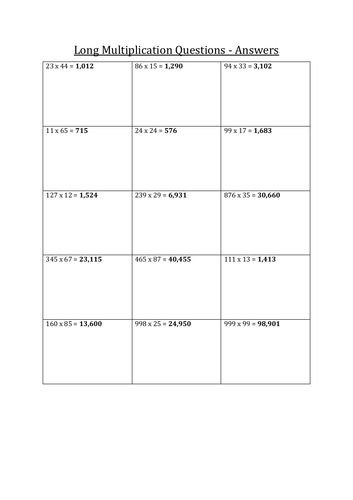 This multiplication worksheet may be configured for 2, 3, or 4 digit multiplicands being multiplied by 1, 2, or 3 digit numbers. You may vary the numbers of . Here are some tips on how to make ma. Now, you can download some of these worksheets for free. Here you will find our worksheet generator for our multi digit multiplication worksheets to help you practice your long multiplication.